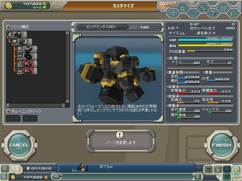 ロボのコメントを変えれるのは微妙にうれしいかも