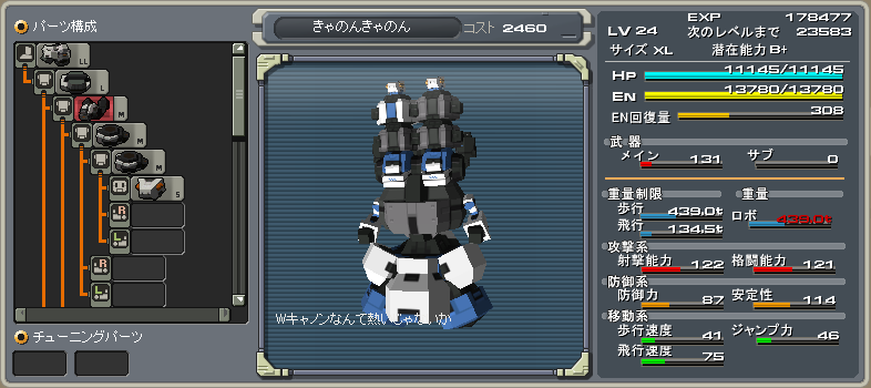武装もHPも大満足だけど、防御と安定はご愁傷様