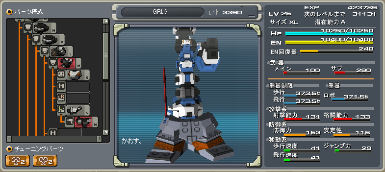 さらにGRLGを組み込んだためプロ2装備で防御力153(Lv25現在)